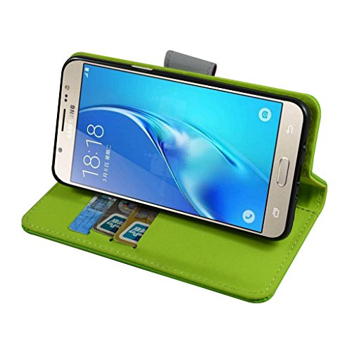 Galaxy J5 2016 Custodia,Mama Mouth Portafoglio custodia in PU di cuoio pelle con supporto carte di credito in Piedi caso Case per Samsung Galaxy J5 J510 2016 Smartphone,Verde