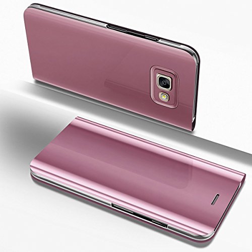 Galaxy A5 2017 Custodia Cover,Uposao Specchio Placcatura Pu Leather Case Flip Cover Custodia Libro in Pelle con Ultra Sottile Hard PC Copertura per Samsung Galaxy A5 2017-(Oro rosa)