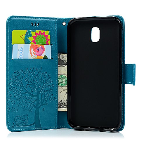 Galaxy J5 2017 custodia/J530 case - Mavis' s Diary custodia a portafoglio, in pelle PU chic Owl Couple Tree Emobssed con gomma interna posteriore Holder Clip & ID/carte di credito/supporto per Samsung J530FD Galaxy J5 (2017) - nero