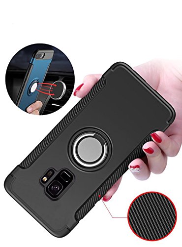 Galaxy S9 Custodia per Samsung, [con 360 ° Rotativa Anello] Antiurto [Doppia Protezione] Fibra di Carbonio [Assorbimento della staffa Magnetica per Auto] (S9, Nero)