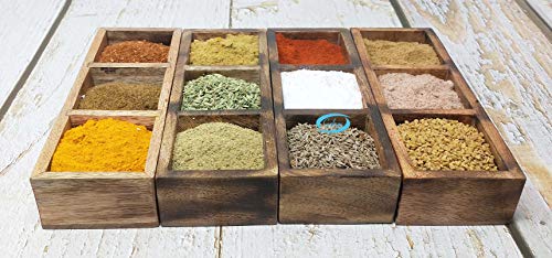 Galaxy Indiacraft Contenitore multiuso in legno per spezie da tavolo, contenitori rimovibili, barattoli da cucina e frutta secca con cucchiaio (4 scomparti multipli)