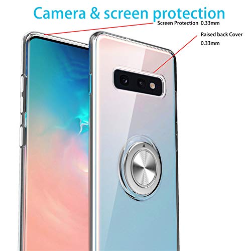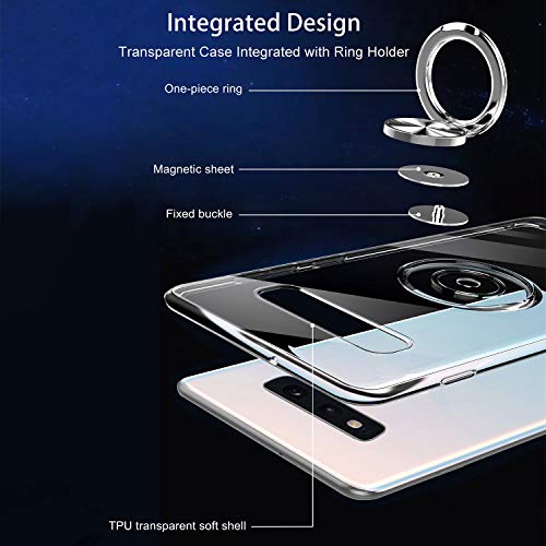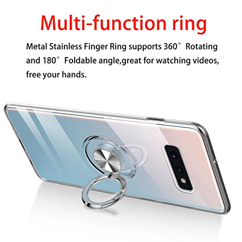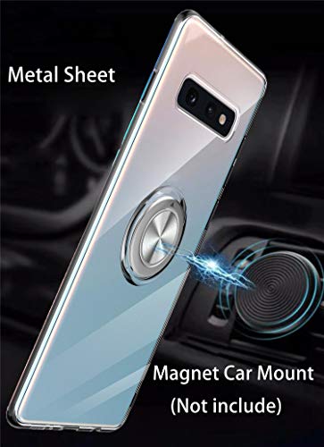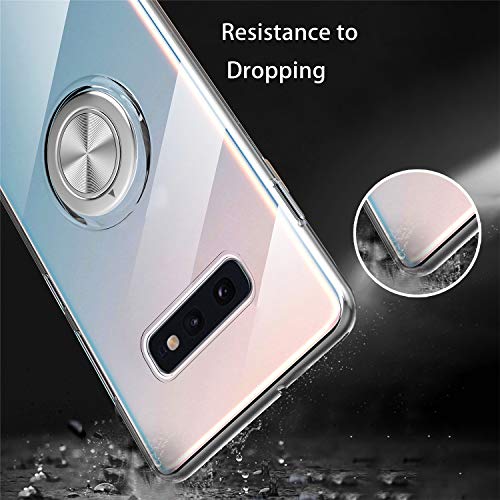 Galaxy S10E - Custodia per Galaxy S10 E, ultra sottile e trasparente, in silicone TPU, con anello a 360 gradi e supporto magnetico per auto (Galaxy 10 E, trasparente)