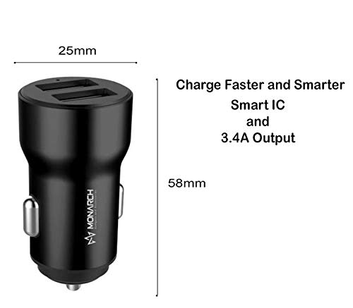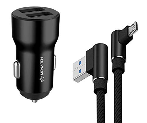 Dual Pack - Caricatore da auto Dual USB da 3,4 Amp + Cavo Micro USB ad angolo retto rinforzato in nylon intrecciato