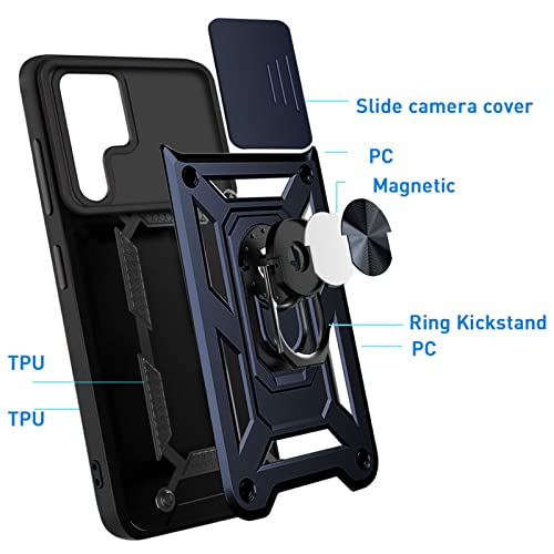 Galaxy S22 Ultra Case con Kickstand, S22 Ultra Custodia protettiva con Slide Camera Cover, Built-in 360°Rotating Ring Stand, Magnetic Car Mounts Phone Case per Samsung S22 Ultra 6.8 pollici 2022(Blu)