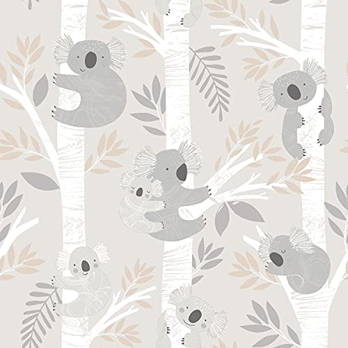 Galerie G78385 - Carta da parati Tiny Tots 2 Koalas, colore: Greige/Tan/Glitter, 10 m x 53 cm
