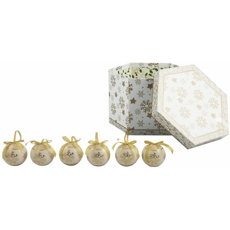 Set di 14 palle di natale con fiocchi di neve dorati Ideali per portare tutta la magia del natale nelle vostre case Adattabili ad ogni tipo di decorazione, sia interna che esterna In scatola regalo