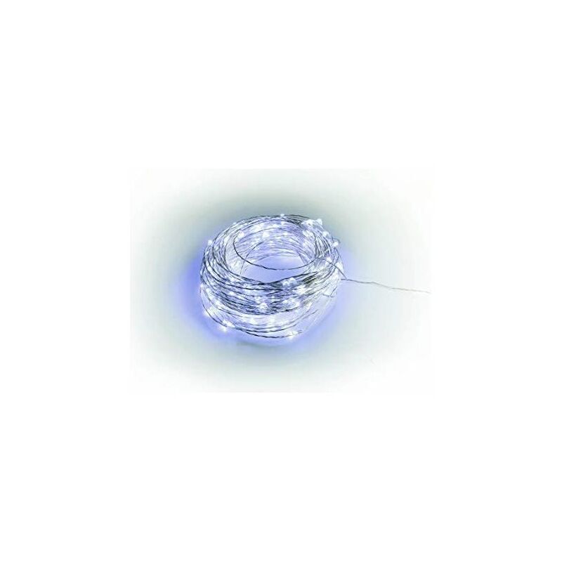 Codice: GL-2197483 Marca: GALILEO. Filo 100 microled Uso esterno Colore: bianco freddo Utilizza 3 batterie AA non incluse (4,5 V) Lunghezza: 10,3 m Massima potenza assorbita: 2 W