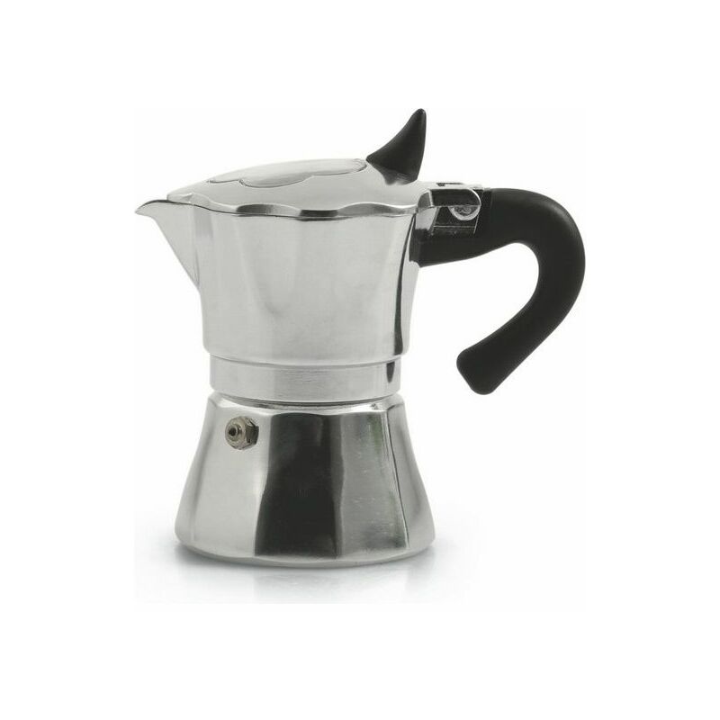 Caffettiera Gaia 1 tazza. In alluminio. Impugnatura e pomello termoisolanti. Utile finestra di controllo fuoriuscita caffè posta sulla parte superiore della caffettiera. Con guarnizione in silicone. Può essere utilizzata su piastre a gas, elettriche e in vetroceramica. Misure: ¥ 6 x h. 10 cm