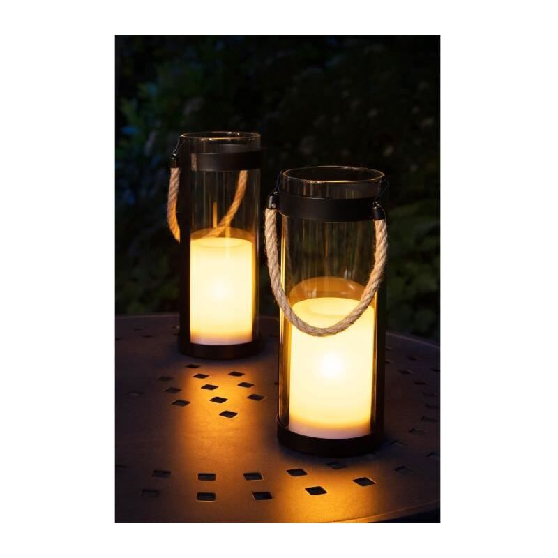 GALIX Lanterna solare in metallo / diffusore in vetro con cavo - Candela LED - 0,02 w - Numero di lumen: 7 - Durata massima dell'illuminazione: 8 ore - Interruttore on / off -1 LED ambra tremolante - 1 x 300 mAh Ni-Mh AAA