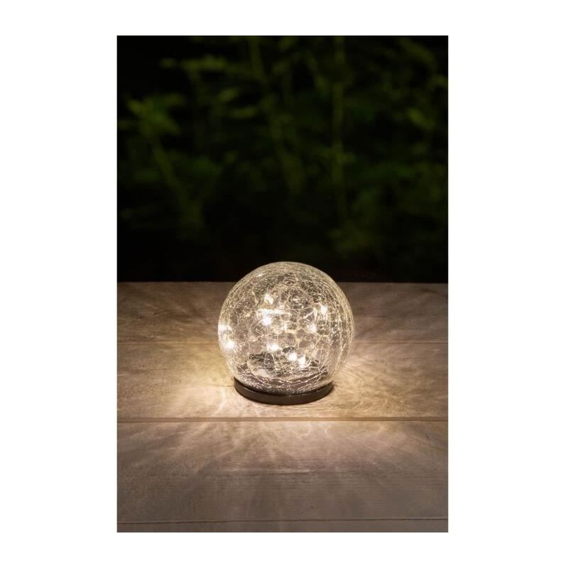 GALIX Sfera di vetro solare - Effetto vetro rotto - Ø 10 cm - 0.10w - Durata massima dell'illuminazione: 8 ore - Numero di lumen: 10 - Interruttore on / off - 15 LED bianchi - 1 x 300mAh Ni-Mh AAA