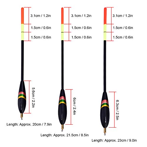 4. Differente galleggiamento: La superficie con pittura di alta qualità, colorfast, resistente all'acqua e anti-ossidazione, che prolunga la sua durata di vita. Questo galleggiante da pesca ha tre pesi di galleggiamento diversi, che possono ben soddisfare le vostre diverse esigenze di pesca ed è molto adatto per le persone che amano la pesca.