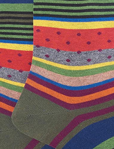 Gallo - Calze Lunghe Uomo Cotone Militare Fantasia Mix Righe E Pois