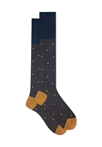 Gallo - Calze Lunghe Uomo Cotone Oltremare/curry Fantasia Pois Su Cangiante Lungo 42/44 oltremare/curry
