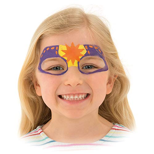 6 colori, gel con brillantini, sticker, pennello, spugnetta e guida.