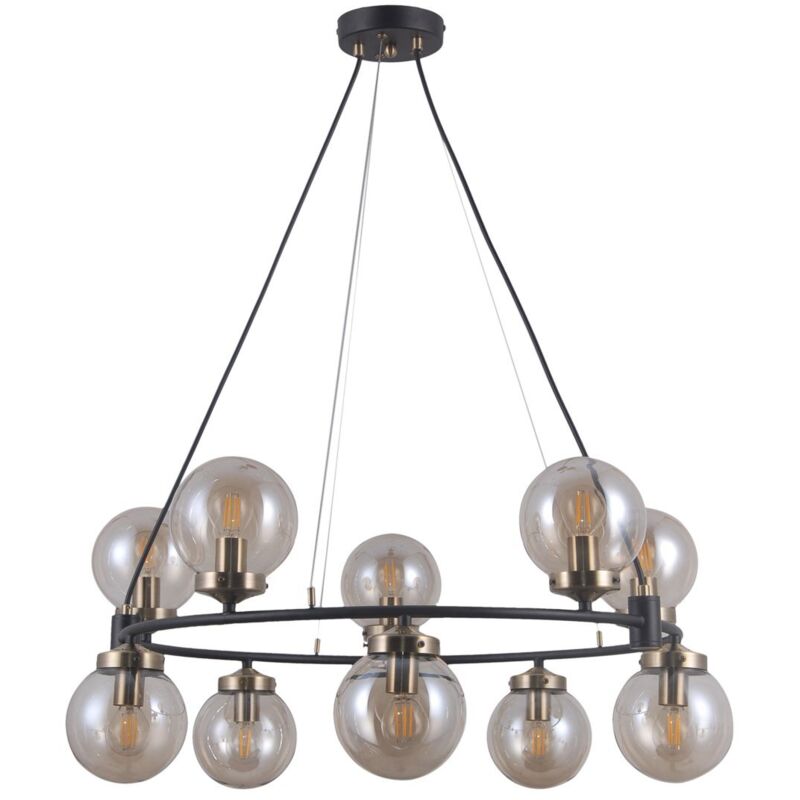 Italux Galvez Lampada da soffitto a sospensione a globo industriale, retrò a 10 luci, E14 | Finitura: nero opaco, bronzo antico | Materiale: acciaio, vetro | Classificazione IP: IP20 | Diametro: 72 cm | Tipo di lampada: E14 | N. di lampade: 10 | Lampadina inclusa: non inclusa | Potenza (massima): 5W...