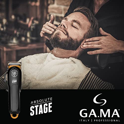 Gama Italy Professional Absolute Stage - Tagliacapelli Uomo Professionale - Senza Fili - Taglio tra 0,8 e 3,8mm - 8 Pettini Guida in Dotazione (da 1,5 a 25mm) - Alimentazione Cord Cordless