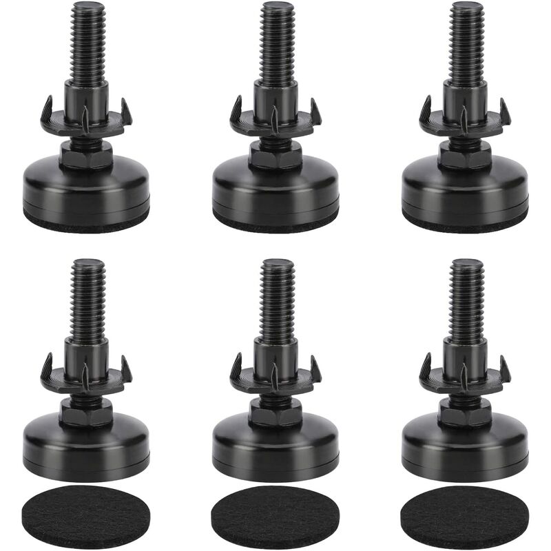 STRUMENTI UTILI - 6 gambe per sedia regolabili antiscivolo e 6 piedini in feltro. La dimensione dei piedini regolabili è di 1,38 pollici di diametro della base e 2,17 pollici di lunghezza del filo. Può essere installato sulla base dell'armadio secondo necessità. È uno strumento pratico nella vita quotidiana. 【FACILE DA INSTALLARE】È sufficiente preforare un foro da 3/8 di pollice e inserire un dado a T per l'installazione universale, quindi avvitare la livella e regolare all'altezza desiderata. 【Antiscivolo e antirumore】La protezione per pavimenti in feltro ad alta densità protegge il pavimento in legno da graffi o rumori aspri e il suo effetto è molto migliore del pad adesivo. Antivegetativa e antiscivolo, tieni le gambe dei mobili lontane dai pavimenti bagnati. 【FORTE STABILITÀ】piedini regolabili antiscivolo della cucina possono aiutare i piedini asimmetrici dei mobili a regolarsi efficacemente, mantenere l'equilibrio dei mobili, evitare il problema dello scuotimento dei mobili e