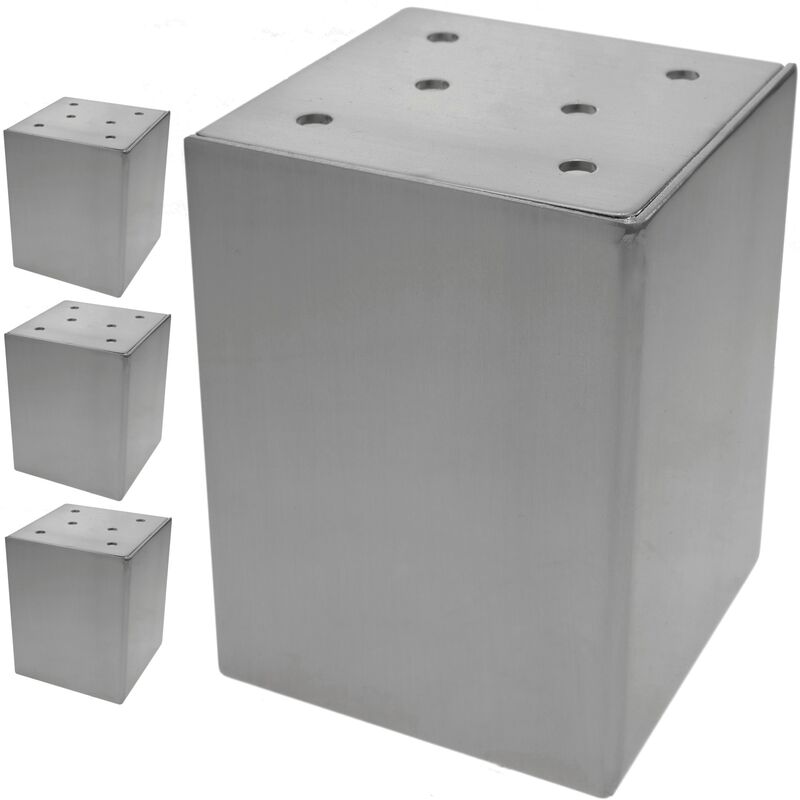 Set di 4 gambe per qualsiasi tipo di mobile su misura, con lo scopo di sostenere il prodotto in questione, inoltre, questo prodotto è composto da robuste gambe realizzate in acciaio laminato a freddo di alta qualità in diversi colori con base in metallo, con perforazioni per inserire le viti. Preferibile per superfici piane Caratteristiche del prodotto MATERIALE: Piedini robusti con base in acciaio cromato a forma cubica, oltre a un facile fissaggio su qualsiasi superficie piana CARATTERISTICHE: Incorpora 4 piedini per diversi tipi di mobili o qualsiasi tipo su misura (fai da te) con 6 perforazioni che presenta il prodotto. Stabilità e resistenza garantite MISURE: Le sue robuste gambe di forma cubica hanno dimensioni di larghezza x profondità e altezza di 80 x 80 x 100 mm. CONFEZIONE: Il prodotto viene fornito in una confezione da 4 unità di piedi. UTILIZZO: Ideale per alzare un tavolo, un mobile o una tavola di legno.