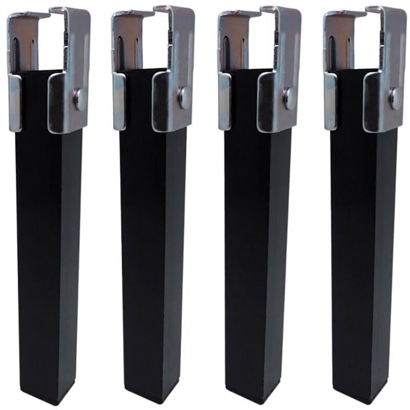 Set di 4 gambe senza ruote per dimensioni rete in acciaio: 35x35x255mm (larghezza/profondità/altezza). finitura nera micel Materiale: Acciaio Marca: Micel Riferimento: Ne 96402 Tipologia: Gambe per rete Colore: Finitura nera Misura: 35x35x255mm Caratteristiche: Senza ruota Contenuto: Set di 4 gambe