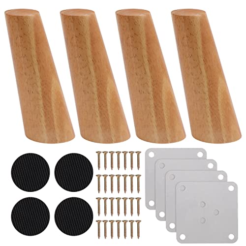4 gambe per mobili in legno, inclinate per divano, gambe in legno con rondelle, piastra di fissaggio e protezione antiscivolo per casa, ufficio, scuola