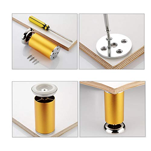 4x Gambe per Mobili in Metallo,Piedini per Armadio,Gamba per Mobile TV,Piede per Divano,Piedi per Letto,per Guardaroba,Comodino,Tavolino,Altezza Regolabile,Lega di Alluminioe,Muto(gold15cm)