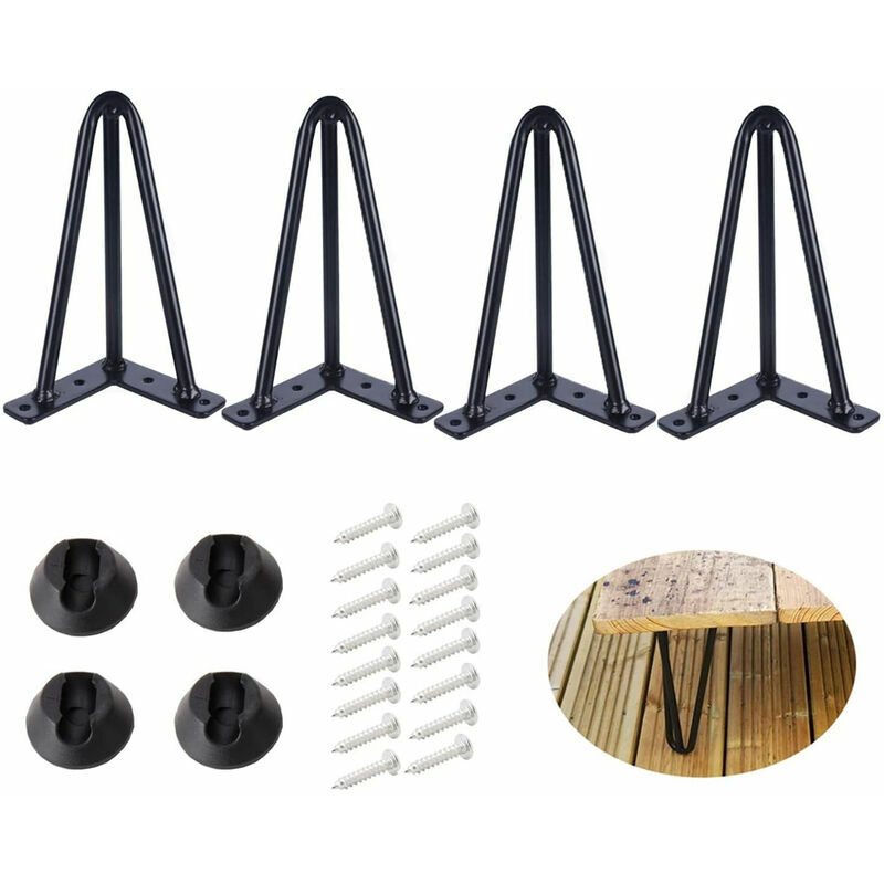 •Un set di 4 gambe del tavolo, alte 15 cm, contiene viti e piedini, facili da installare. •Il materiale metallico spesso 10 mm è resistente e durevole e la decorazione nera è facile da pulire. •Il fermaglio per capelli in stile moderno è un classico design a forma di U, che è bello e pratico. •Adatto per desktop, tavoli da pranzo, comodini, sgabelli, sedie, armadi e altri mobili.