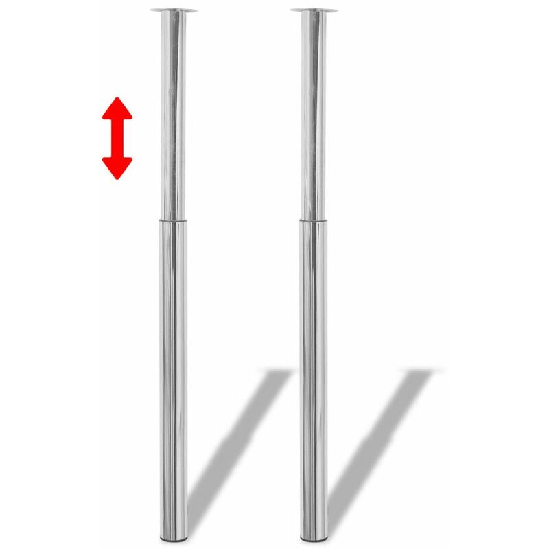 Colore: Cromato Materiale del tubo: Ferro Dimensioni: 60 x (710-1100) mm (Diam x A) Gamba telescopica - l'altezza regolabile della gamba tra 710 mm e 1100 mm Per tavoli da cucina, tavoli da pranzo, tavoli da lavoro o scrivanie. Stabili e molto resistenti Assemblaggio facile e veloce La consegna include: 2 Tubi 2 Piedi 4 Staffe di montaggio Questo set di 2 gambe per tavolo di alta qualità sono state progettate per tavoli da cucina, tavoli da pranzo, tavoli da lavoro, scrivanie ecc. Realizzate in materiale di alta qualità, queste gambe per tavolo telescopiche sono molto robuste e stabili. Grazie ai tubi telescopici, le gambe del tavolo possono essere regolate a qualsiasi altezza tra 710 mm e 1100 mm. Il montaggio è molto facile e veloce. Colore: Cromato Materiale del tubo: Ferro Dimensioni: 60 x (710-1100) mm (Diam x A) Gamba telescopica - l'altezza regolabile della gamba tra 710 mm e 1100 mm Per tavoli da cucina, tavoli da pranzo, tavoli da lavoro o scrivanie. Stabili e molto