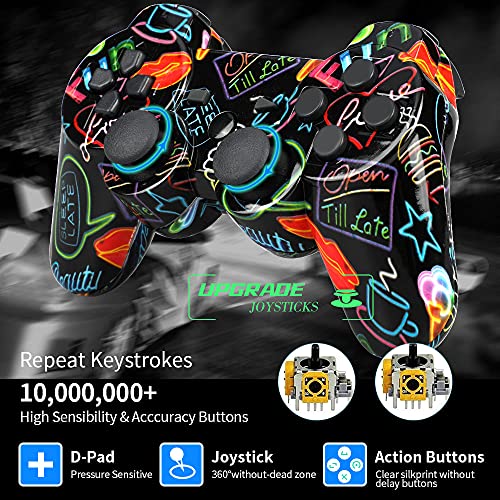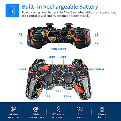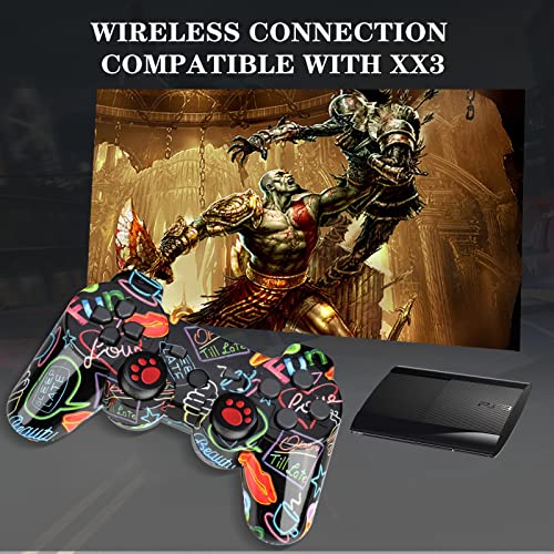Game Controller, Wireless Controller Doppio Shock Gamepad Compatibile per Play3, Gamepad Ergonomico con Caricabatterie e Impugnature Pollice, 2021 Versione Graffiti (Red)