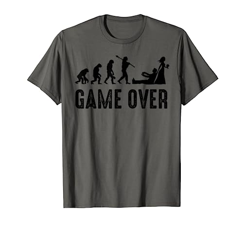 Design per coppia di sposi con divertente motivo evoluzione della coppia di sposi e la scritta "Game Over" per lo sposo, il testimone di nozze e tutti gli amici. Perfetto per la festa di addio al nubilato, il matrimonio, la festa di fidanzamento per figlio, fidanzato o fratello.