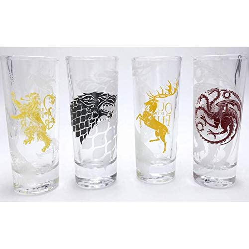 Game of Thrones set di 4 bicchieri Stark Lannister Targaryen Baratheon Crest Bicchierini 10cl