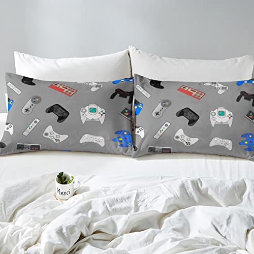 Gamepad Set Lenzuola Console Gamer Grigio Lenzuola per Bambini Ragazzi Ragazze Vari Video Game Set Biancheria da Letto Moderno Controller Decor Lenzuolo con Angoli Collezione 2 Pz Singolo