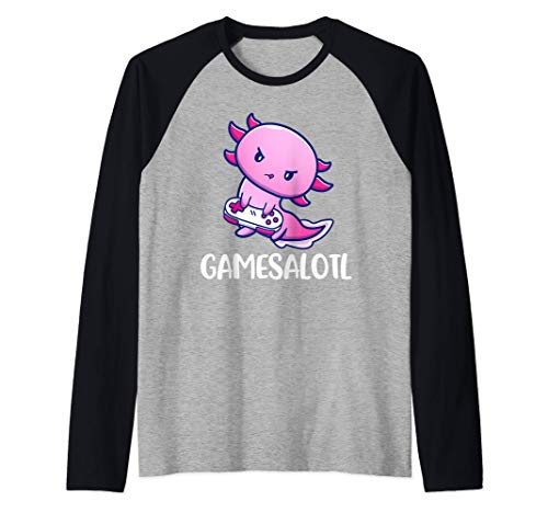 Gamesalotl Axolotl Cute Playing Video Game Maglia con Maniche Raglan