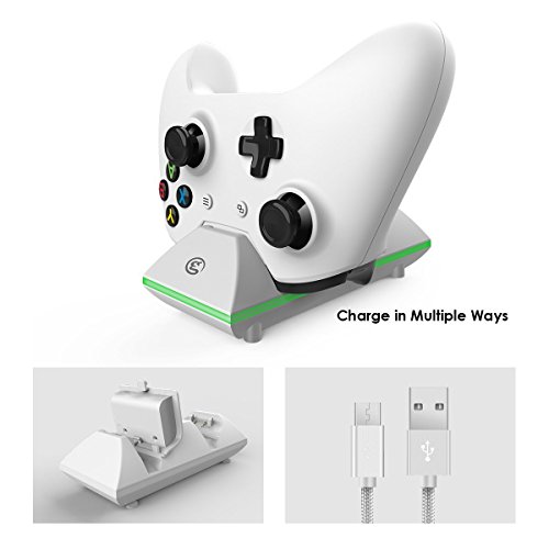 La stazione di ricarica di alta qualità è stata progettata specialmente per i controller senza fili di Xbox One/One X/Xbox One S/Xbox One Elite, contemporaneamente conseva e ricarica 2 controller Xbox One. Il connettore placcato oro per una veloce carica. I controller sono totalmente carichi in 3,5 ore.