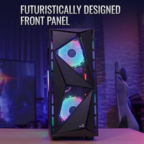 Modello Cabinet Aerocool GLIDER Colore NERO con 2 VENTOLE RGB, pannello laterale Trasparente, 3 Connettori USB e uscite Audio in HD