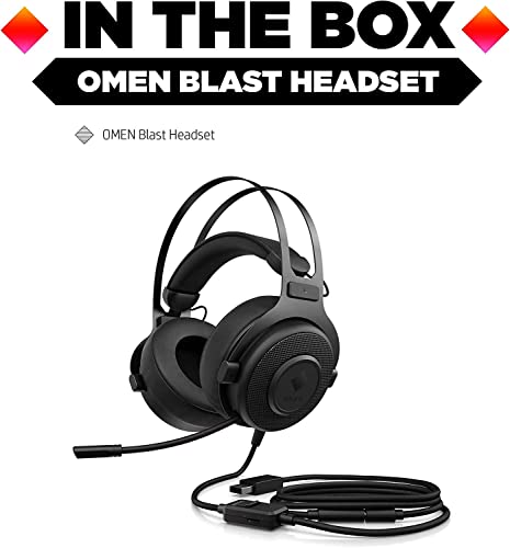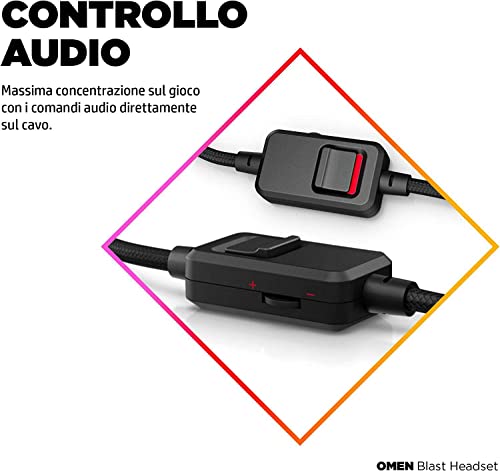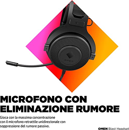HP - Gaming OMEN Blast Cuffie con Cavo USB, Audio Surround 7.1, Archetto Sospeso, Cuscinetti Imbottiti, Microfono Retrattile, Comandi in Linea, OMEN Command Center, Compatibilità PC e Consolle, Nero