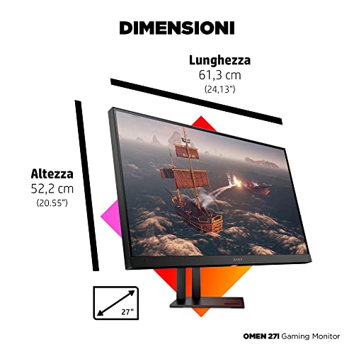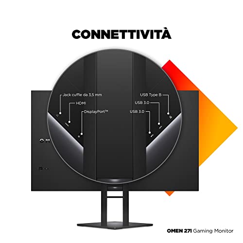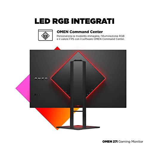 HP - Gaming OMEN 27i Monitor 27” QHD, Refresh Rate 165 Hz, Tempo risposta 1 ms Ovedrive, Tecnologia NVIDIA G-SYNC, Micro-Edge, Antiriflesso, Comandi su Schermo, DisplayPort, HDMI, Nero