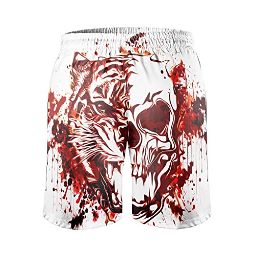Gamoii - Costume da bagno da uomo, con teschio, tigre, per spiaggia, corto, con stampa 3D, fodera in mesh, con coulisse, tasche laterali, colore bianco