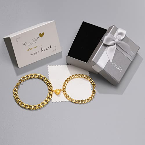 Gamtic Bracciale Coppia Fidanzati Calamita Magnetico Bracciali Amicizia Acciaio Inossidabile con Scatola Regalo per Amante Partner Amico Membro Della Famiglia Uomo Donna (Oro)