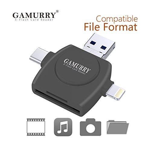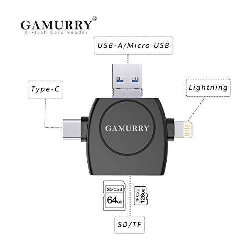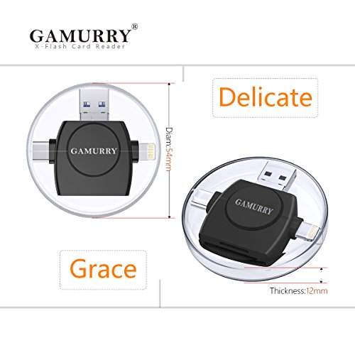 GAMURRY Mini External Storage Memory Expansion USB Stick Multipurpose USB 3.0 Flash Drive with Lightning Connector for iPhone, iPad,Mac, Android (SD/TF(black))