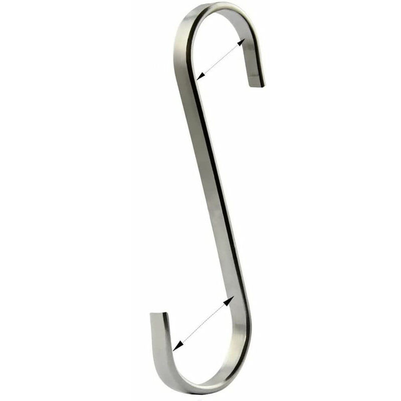 10 pezzi di ganci a S in acciaio inossidabile per utensili da cucina o macellaio Materiale: acciaio inossidabile di altissima qualità (304), resistente e ispessito senza sbiadire Ganci robusti: lo stoccaggio i ganci possono sostenere fino a 18 kg, possono sopportare carichi più pesanti. I ganci piatti sono più robusti e antiscivolo dei ganci tondi Per strisce metalliche, pareti forate, griglie per pareti, ecc. Ideale per appendere cravatte, cinture, fazzoletti. ecc., può essere utilizzato anche per appendere pentole, padelle e altri utensili da cucina