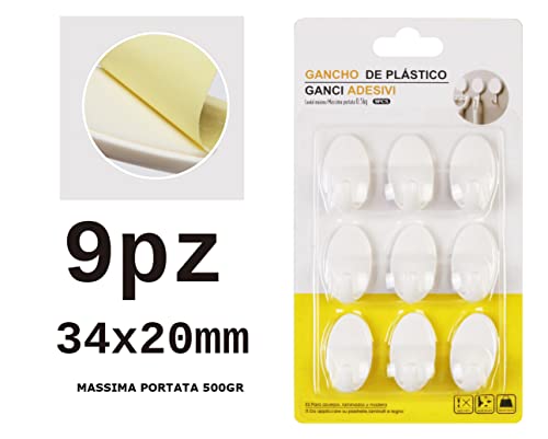 Ganci Adesivi 9pezzi,Ganci appendiabiti e portasciugamani Autoadesivi, plastica, bianco,ovale, Confezione da 9 pezzi