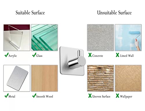 ✅Note Importanti- I ganci si adattano a superfici lisce e solide, come vetro, metallo, piastrelle, marmo, legno, ecc. MA non sono adatti per queste superfici come muro di Cemento, Muro Calcinato, Superficie Irregolare, Carta da Parati.