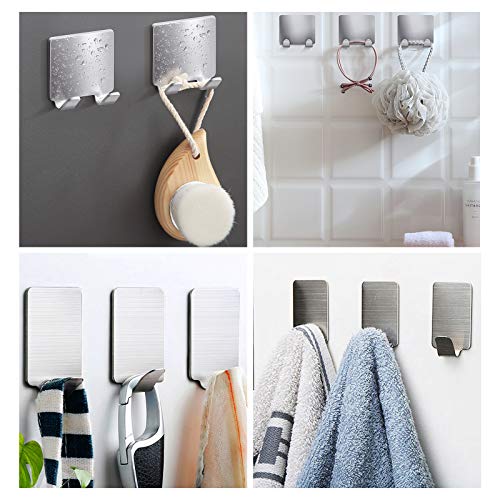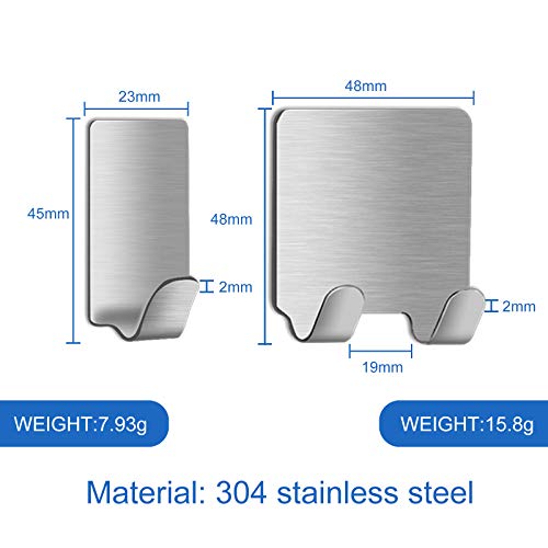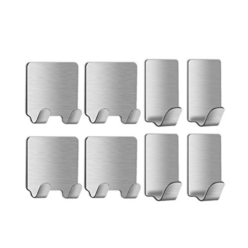 Gancio singolo + ganci doppi: ganci autoadesivi confezione da 8 pezzi, 4 pezzi con doppi ganci dimensioni 48 cm x 47 cm, 4 pezzi con gancio singolo dimensioni 25,1 cm x 44,8 cm, soddisfano le diverse esigenze di appendere. Acciaio inossidabile 304 di alta qualità: spazzolato, resistente, impermeabile, facile da pulire, durevole e antiruggine