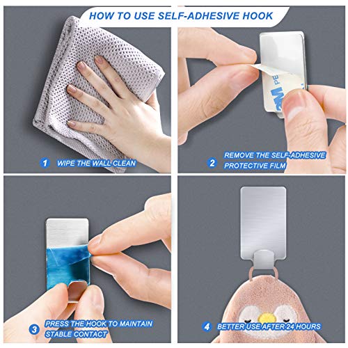 Facile installazione: i ganci adesivi da parete in acciaio inox sono facili da installare, basta staccare il coperchio blu e premere la schiuma 3M PE sulla parete per incollare, senza fori, non danneggia la parete. Si prega di utilizzare il gancio dopo 24 ore di installazione
