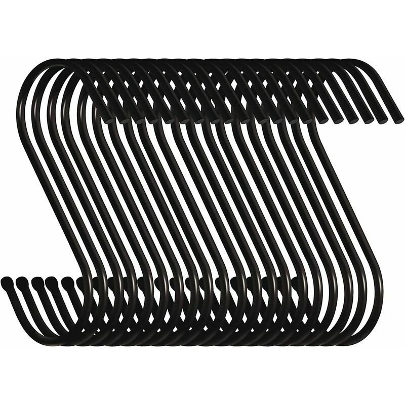 peso massimo: 5 kg. Lunghezza: 9 cm - Apertura: 3 cm - Diametro del filo: 3 mm. A forma di S, non richiede colla o viti. Ideale per utensili da cucina e può essere montato a parete per organizzare utensili da cucina come pentole, padelle, spazzoloni e cucchiai per risparmiare molto spazio in cucina. Questi ganci appendiabiti sono adatti anche per l'uso in armadio, bagno, lavanderia, garage, officina e ufficio o come cesto per piante da appendere, gioco di cloche o lanterna da esterno con questi robusti ganci in acciaio, qualunque cosa tu voglia. La confezione contiene 20 ganci;