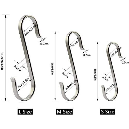 Puoi usare questi ganci a S per organizzare i tuoi utensili da cucina, pentola, padella ecc. Appendendoli sugli scaffali o sulla griglia. Questi ganci in acciaio inossidabile possono aiutarti a risparmiare più spazio in cucina
