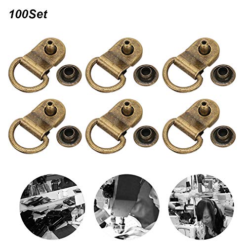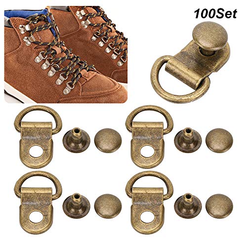 100 set ganci per lacci per scarponi, anello ad anello con rivetti, fibbia per stivali per scarpe Gancio per lacci per scarpe Anello a D Fibbia con occhiello Fibbia per scarpe in ottone Borsa in pelle