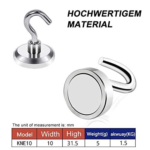 Ganci Magnetici, Ganci Magnetici Extra Forti,Potente Neodimio Magnete Gancio,Ganci Magnetici al Neodimio da 10 mm, Magneti Super Potenti con Ganci, Ganci Magnetici per l'uso in Cucina,6 Pezzi