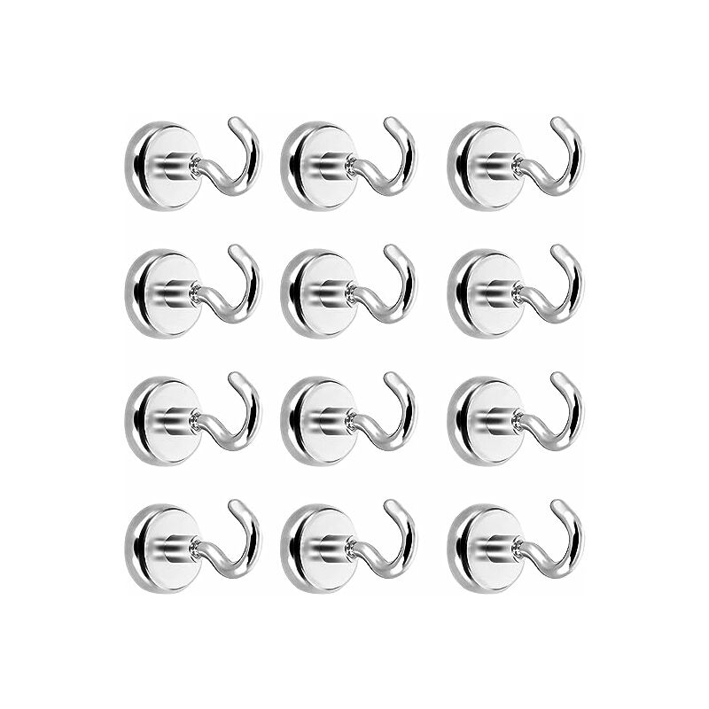 Materiale di alta qualità: il gancio è realizzato in materiale di alta qualità, la resistenza è permanente, la durata è lunga e il modello di utilità non è facile da rompere. Il diametro è di 16 mm, piccolo ma utile. Design accattivante: il nichel spazzolato e la forma liscia a U completa impediscono agli oggetti di scivolare.Perfetto per appendere tutte le forniture da cucina e appendere ombrelli, vestiti e borse dietro le porte di sicurezza. Confezione da 12: la confezione contiene 12 ganci magnetici, sempre di scorta. Supporta 5,5 kg (12 libbre) nei test di laboratorio. Nessun attrezzo richiesto: mettili ovunque per un'applicazione permanente o temporanea. Oppure portali con te quando viaggi per riporli facilmente e appenderli. Versatile: utilizzali in casa, cucina, ufficio, studio, garage, capannone, palestra, armadietti o altro! Questo gancio può essere assorbito su qualsiasi superficie magnetica senza dover perforare gli infissi di casa!