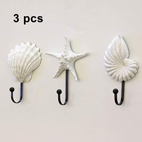 3 ganci da parete a conchiglia marina, stella di pesce, cappotto/conchiglia, gancio vintage per appendere vestiti, sciarpe, gioielli (bianco)